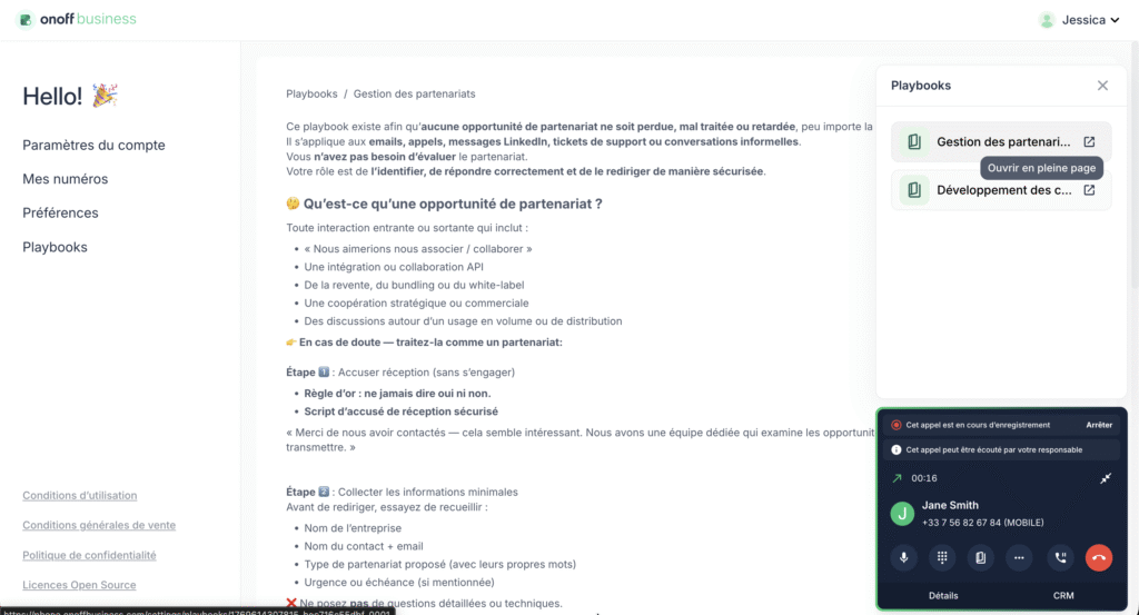 Playbook : des scripts d’appel en temps réel pour les équipes commerciales et support. Donnez à vos équipes des guides structurés, disponibles à la demande, pour gagner en confiance et garantir un discours cohérent à chaque interaction.